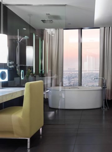 The Red Line of the Dubai Metro will take you directly from Dubai International Airport to the Burj Khalifa/Dubai Mall Station in 25 minutes – with a stunning view of the world’s tallest building along the way. A taxi ride from the airport takes less than 15 minutes. For added convenience, our concierge will be happy to arrange a limousine pick-up..